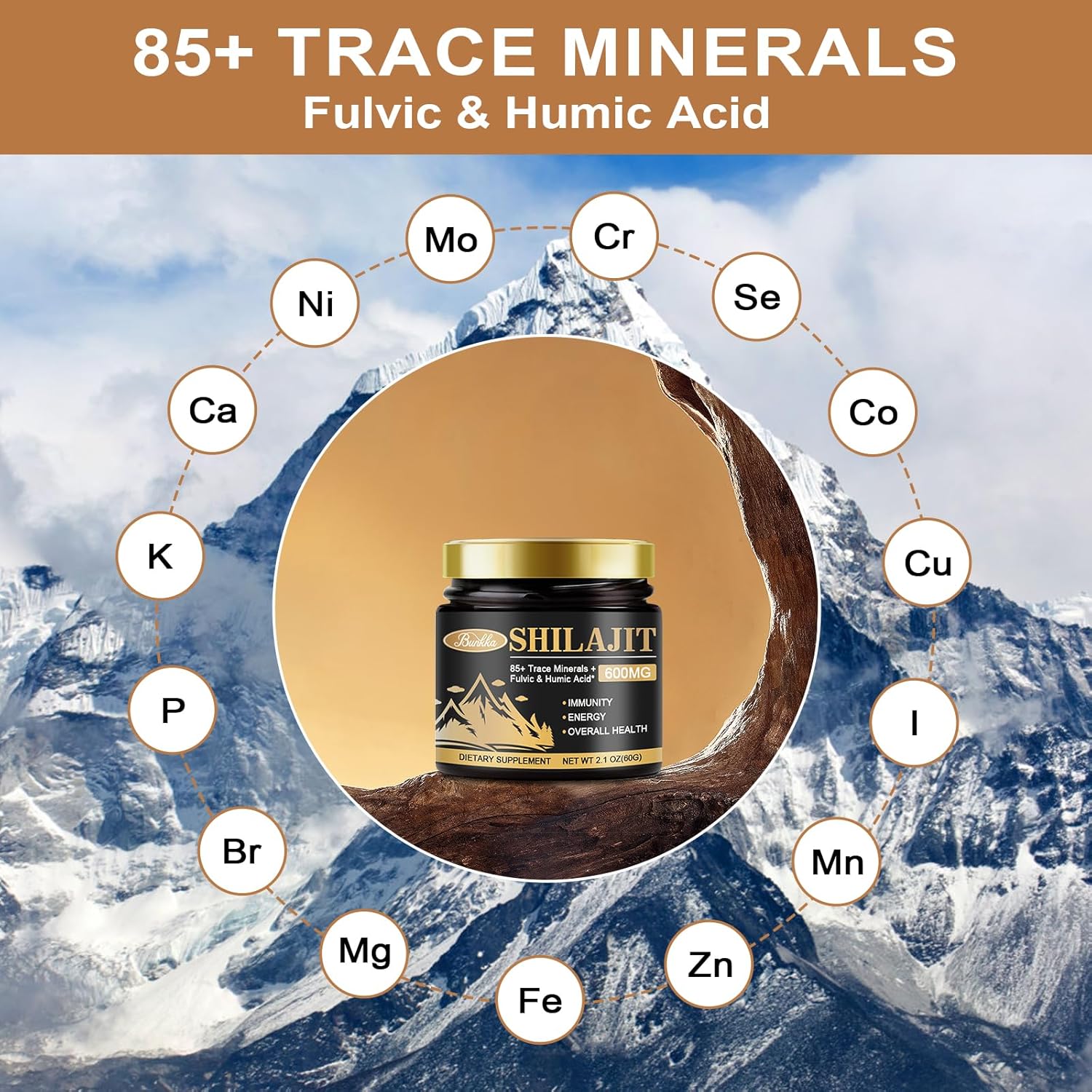 🧬 El Shilajit es una resina natural formada durante siglos en las montañas del Himalaya. Es rico en minerales, oligoelementos y ácido fúlvico, lo que lo convierte en un potente suplemento para aumentar la energía, mejorar la salud cognitiva, fortalecer el sistema inmunológico y combatir el estrés y la fatiga.